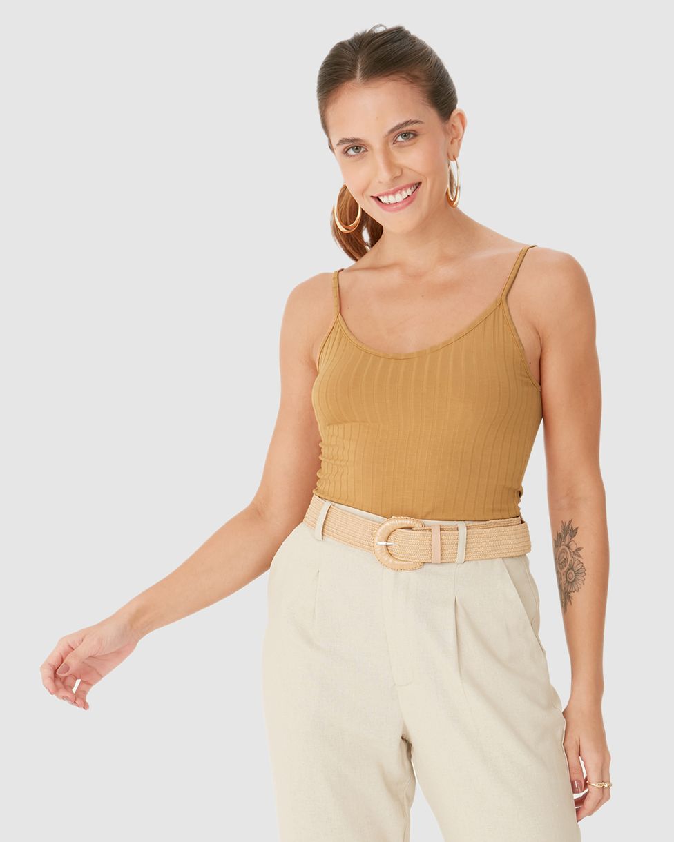 FemininoBlusas e CamisetasBlusas BásicasRegata Básica Feminina Alça Fina Em Canelada De Viscose