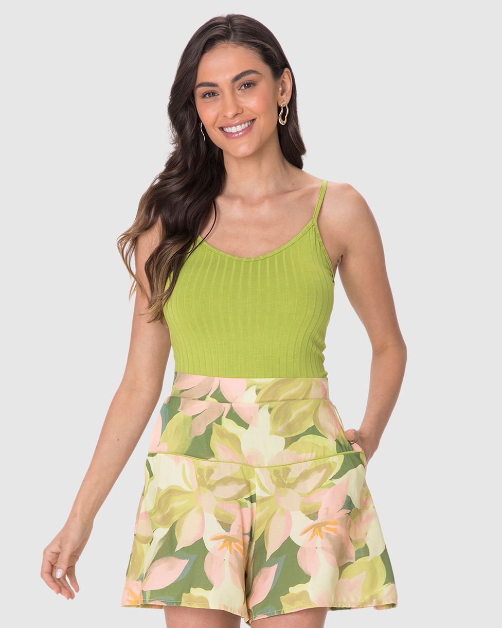 FemininoBlusas e CamisetasBlusas BásicasRegata Básica Feminina Alça Fina Em Canelada De Viscose