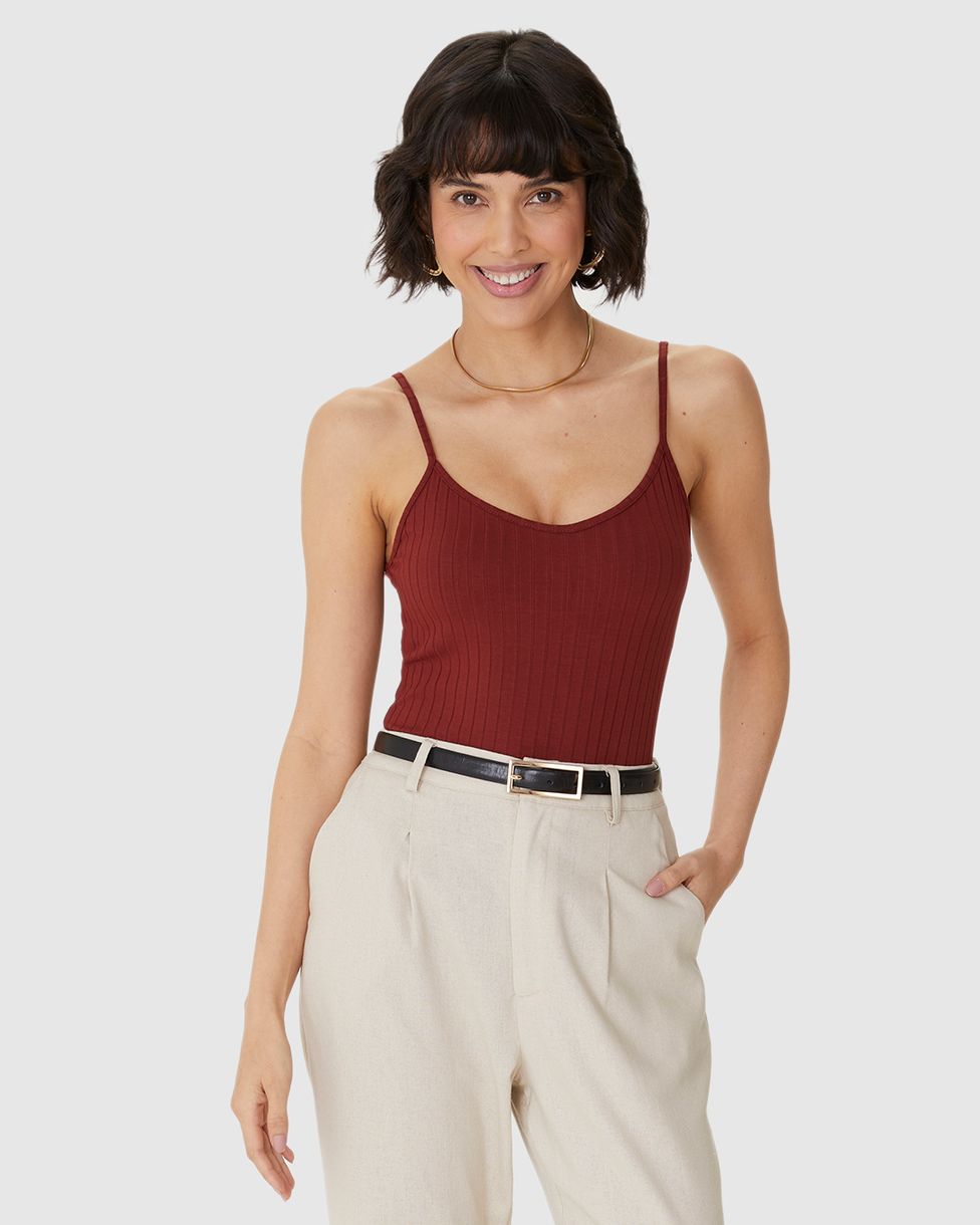 Regata Básica Feminina Alça Fina Em Canelada De Viscose