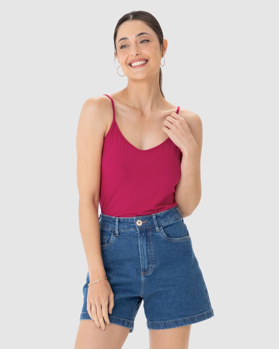 Regata Básica Feminina Alça Fina Em Canelada De Viscose