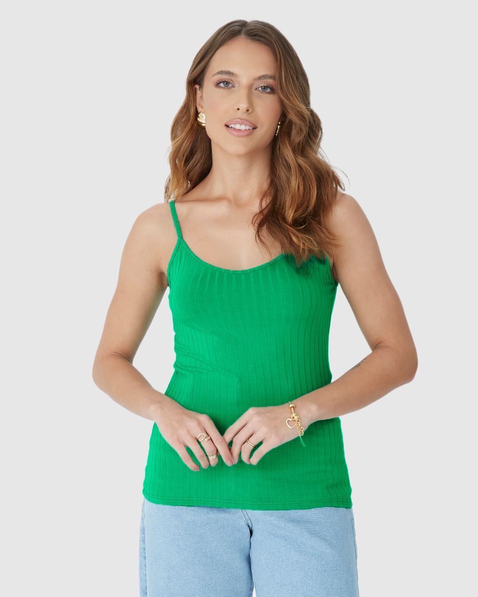 Regata Básica Feminina Alça Fina Em Canelada De Viscose
