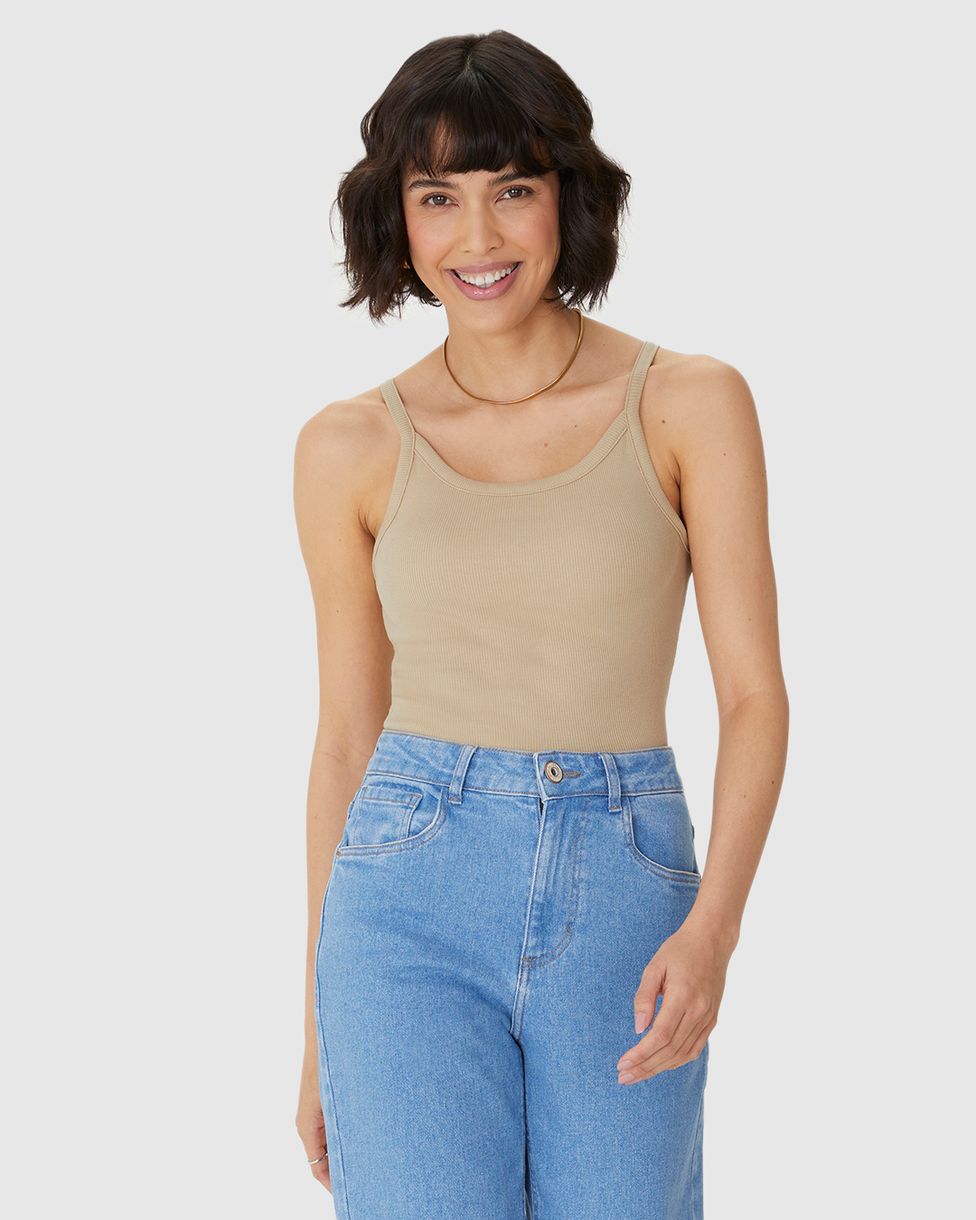 Regata Básica Feminina Alça Fina Em Ribana