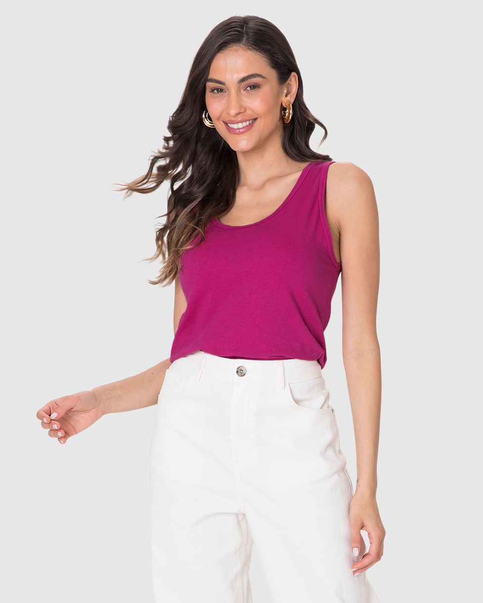 Regata Básica Feminina Alça Larga Em Malha Linho