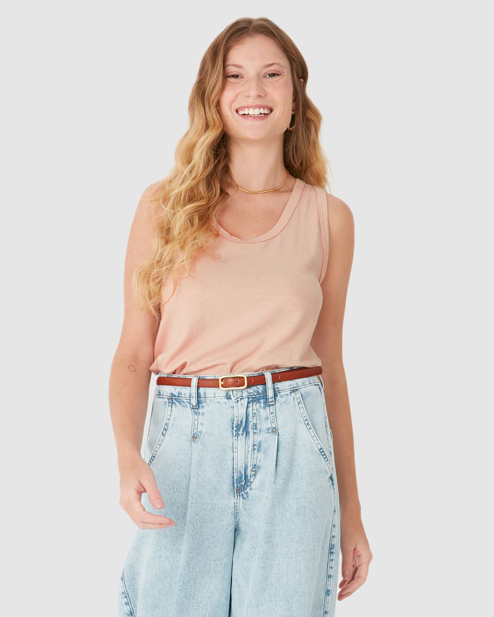 Regata Básica Feminina Alça Larga Em Malha Linho