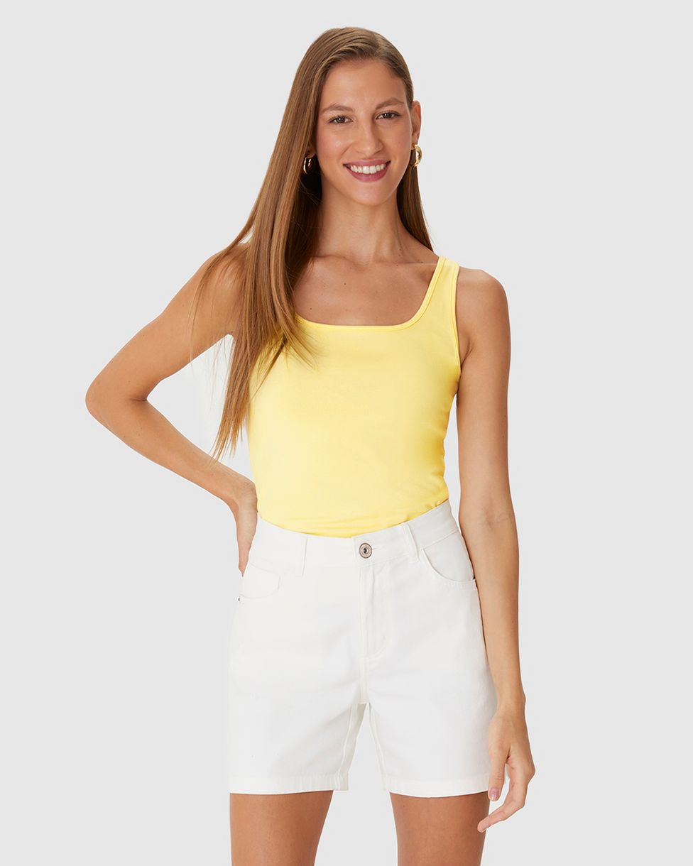 Regata feminina feita em tecido de algodão com base de 85%. A regata é uma peça essencial no guarda-roupa feminino e perfeita para criar looks de verão! Essa peça em decote redondo e alças médias támbém foi feita em malha de algodão, sendo conhecida por seu aspecto natural, conforto e versatilidade. Com toque suave, possui fácil manuseio e secagem rápida. Combine com shorts em jeans da Malwee e camisa sobreposta com sandália baixa de fibras naturais!