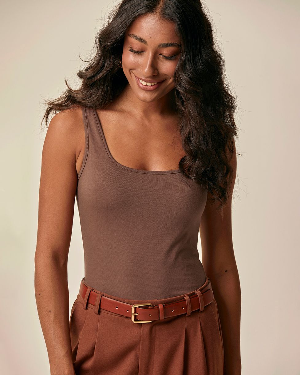 Regata Básica Feminina Alça Média Em Algodão Marrom - XGG