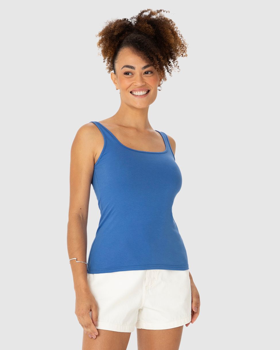 FemininoBlusas e CamisetasBlusas BásicasRegata Básica Feminina Alça Média Em Algodão