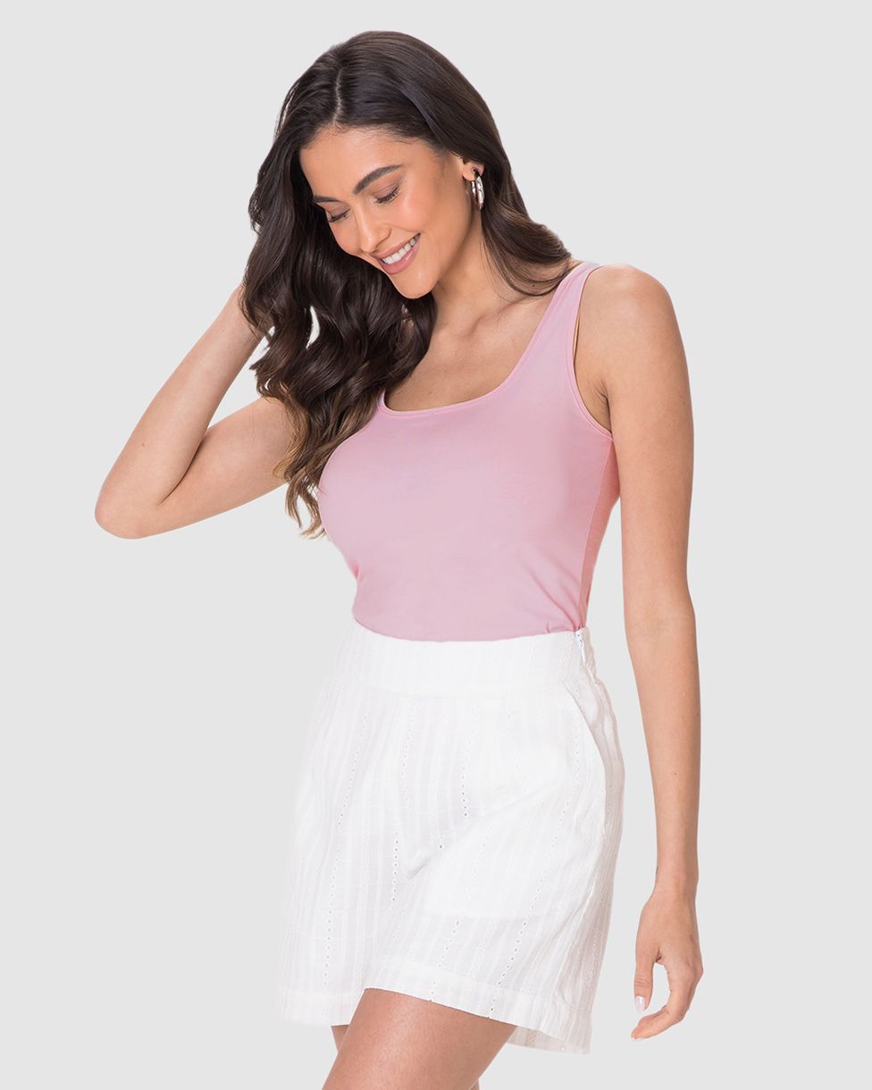 Regata feminina feita em tecido de algodão com base de 85%. A regata é uma peça essencial no guarda-roupa feminino e perfeita para criar looks de verão! Essa peça em decote redondo e alças médias támbém foi feita em malha de algodão, sendo conhecida por seu aspecto natural, conforto e versatilidade. Com toque suave, possui fácil manuseio e secagem rápida. Combine com shorts em jeans da Malwee e camisa sobreposta com sandália baixa de fibras naturais!