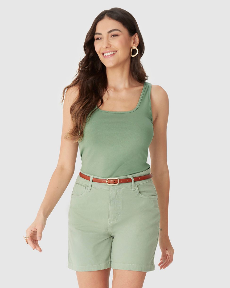 Regata Básica Feminina Alça Média Em Algodão Verde - G