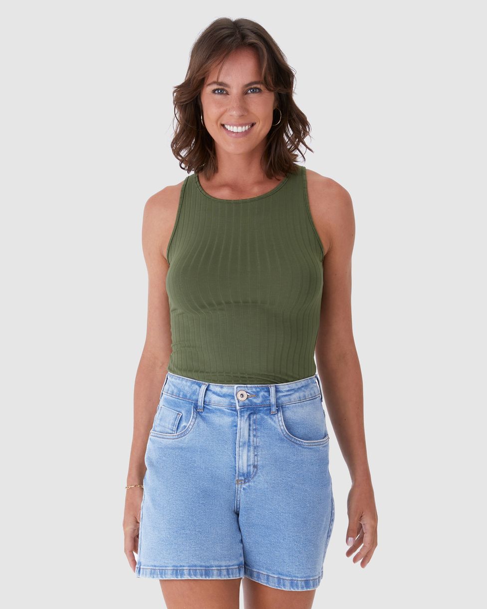 Regata feminina feita em tecido canelado de viscose. Apresentando uma blusa com caimento mais ajustado ao corpo, é a peça perfeita para o dia a dia das mulheres. Também apresentando decote redondo levemente fechado e alças medianas, ela foi feita em malha canelada texturizada que permite frescor e conforto. Uma regata que permite combinações versáteis com peças de baixo de cintura alta e sobreposições!