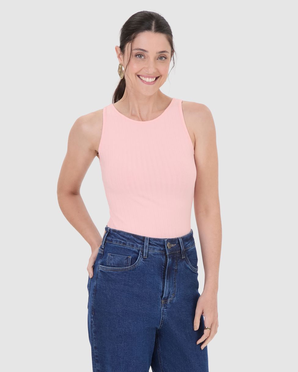 Regata Básica Feminina Decote Redondo Em Canelado De Viscose