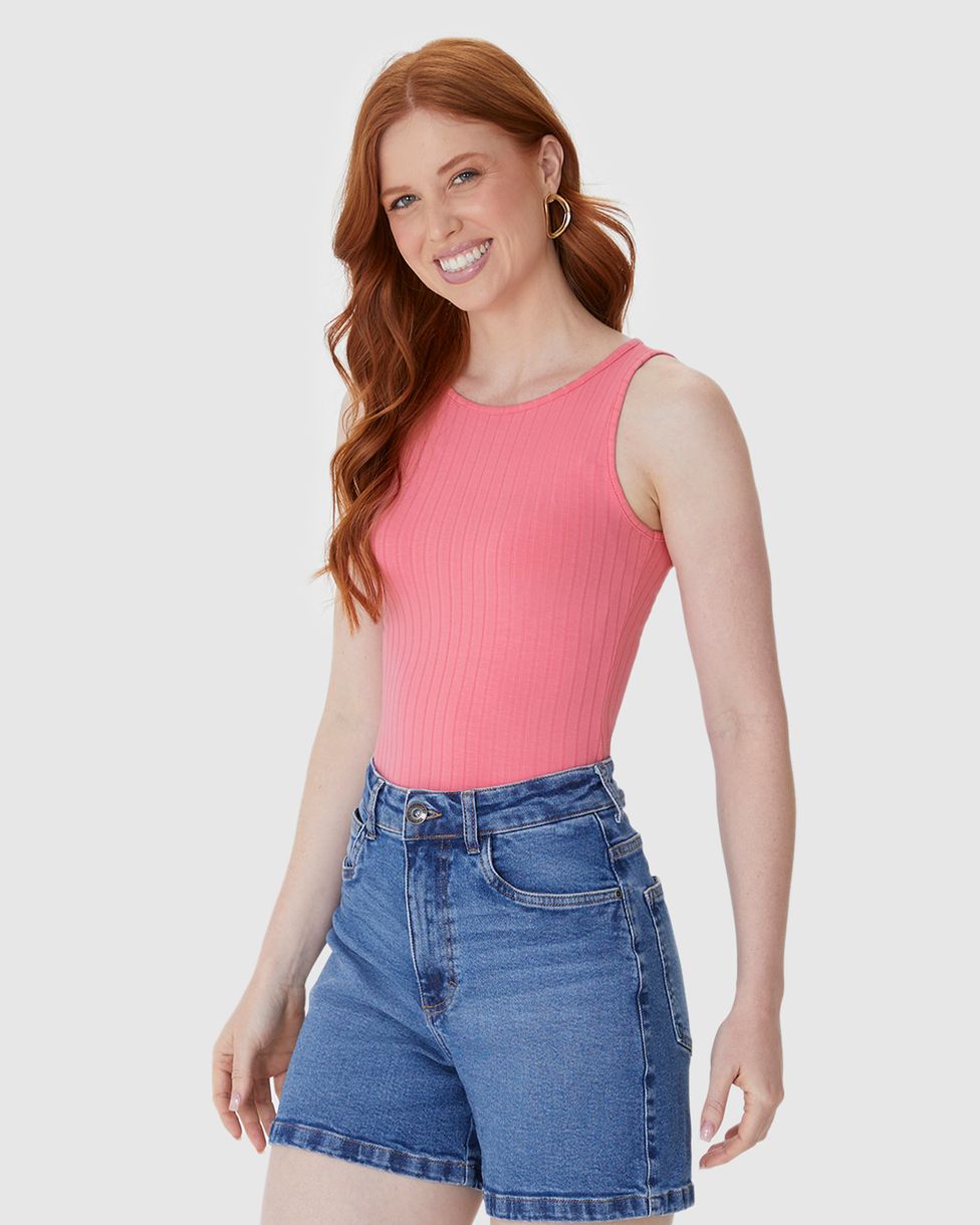 Regata feminina feita em tecido canelado de viscose. Apresentando uma blusa com caimento mais ajustado ao corpo, é a peça perfeita para o dia a dia das mulheres. Também apresentando decote redondo levemente fechado e alças medianas, ela foi feita em malha canelada texturizada que permite frescor e conforto. Uma regata que permite combinações versáteis com peças de baixo de cintura alta e sobreposições!