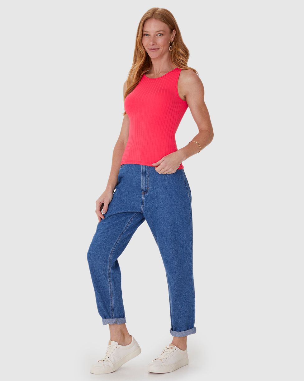 Regata feminina feita em tecido canelado de viscose. Apresentando uma blusa com caimento mais ajustado ao corpo, é a peça perfeita para o dia a dia das mulheres. Também apresentando decote redondo levemente fechado e alças medianas, ela foi feita em malha canelada texturizada que permite frescor e conforto. Uma regata que permite combinações versáteis com peças de baixo de cintura alta e sobreposições!