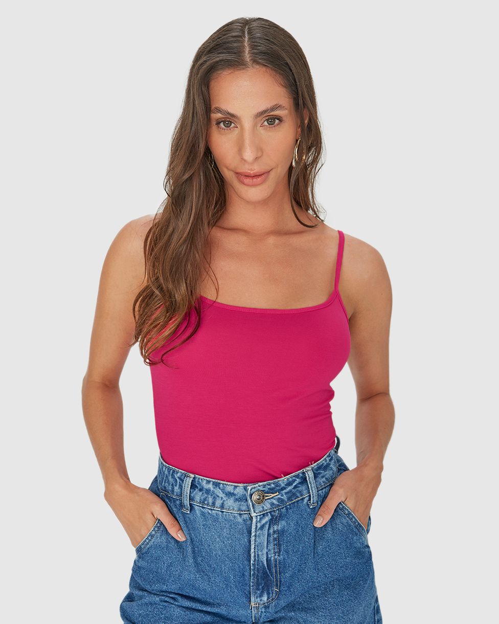 Regata Básica Feminina Decote Redondo Em Viscose Stretch