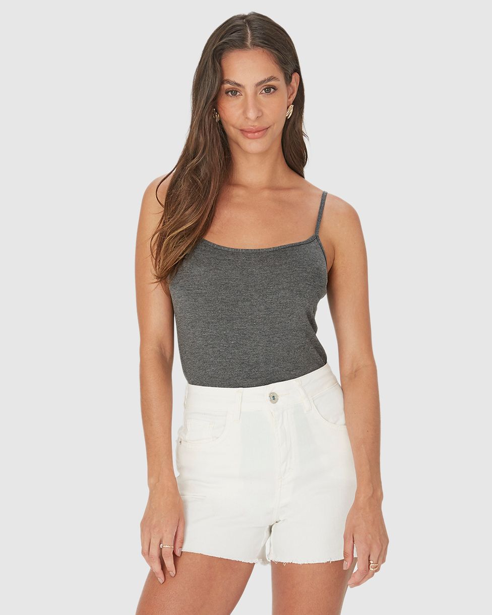 Regata Básica Feminina Decote Redondo Em Viscose Stretch