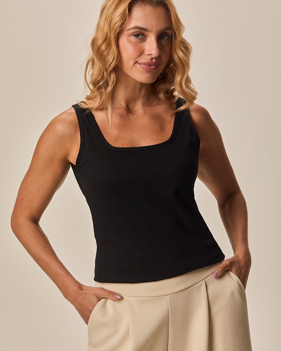 Regata Básica Feminina Decote U Em Algodão Preto - G