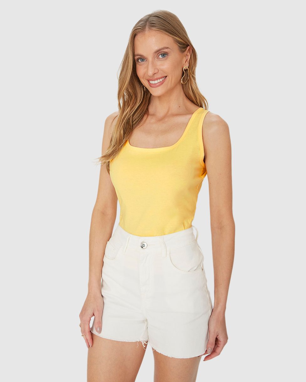 Regata feminina confeccionada em meia malha 100% de algodão. Apresentando o shape Tradicional, com caimento confortável no corpo, essa regata com alças médias e decote U é curinga para os dias mais quentes da estação. Além disso, ela foi feita em tecido confortável em meia malha 100% algodão, com toque suave e muita versatilidade no uso. Uma peça perfeita para um dia casual, aposte com saia midi estampada e sandália baixa!