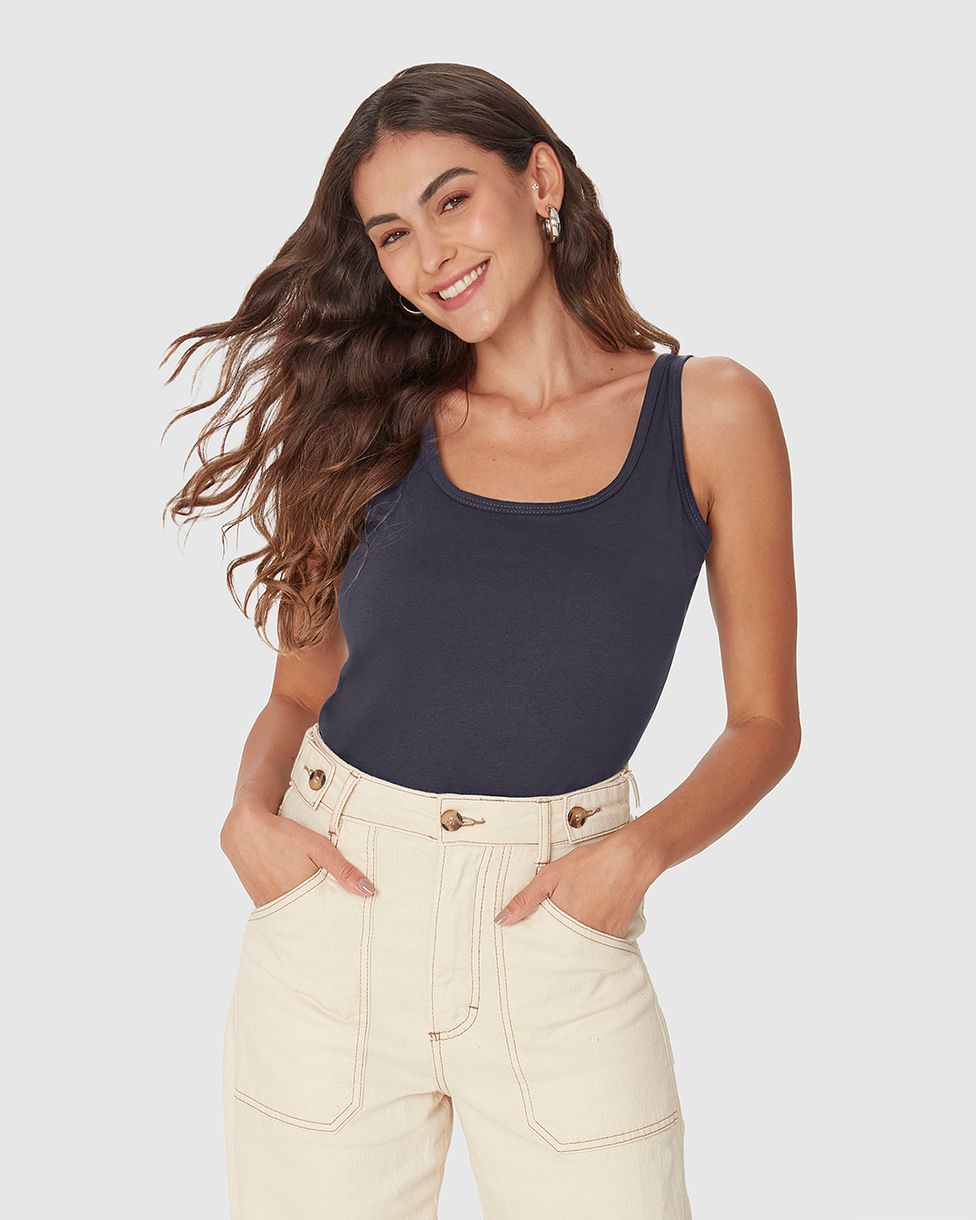 Regata Básica Feminina Decote U Em Malha Algodão Pima