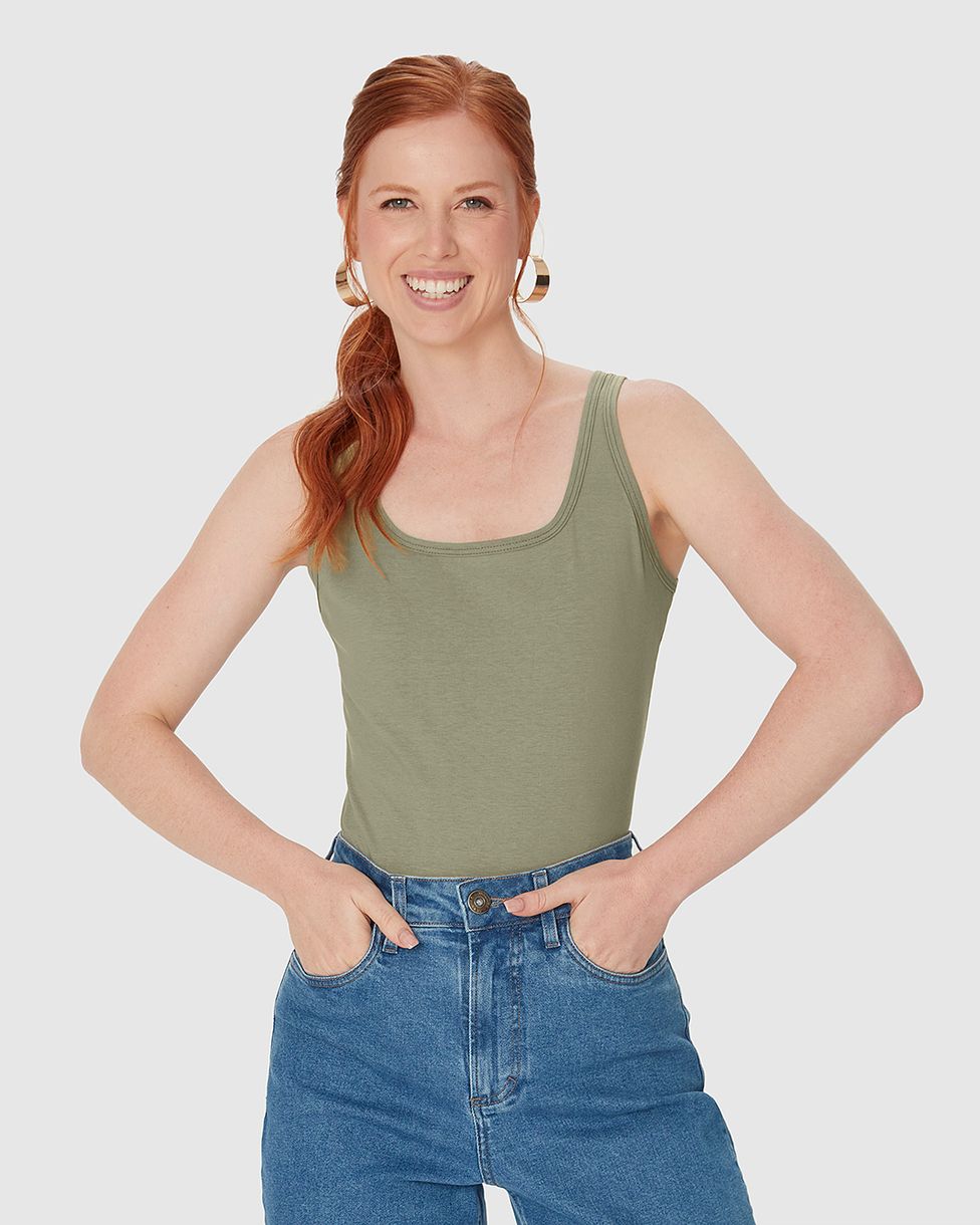 Regata Básica Feminina Decote U Em Malha Algodão Pima