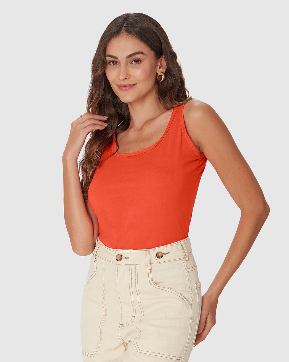 Regata Básica Feminina Decote U Em Malha Algodão Pima