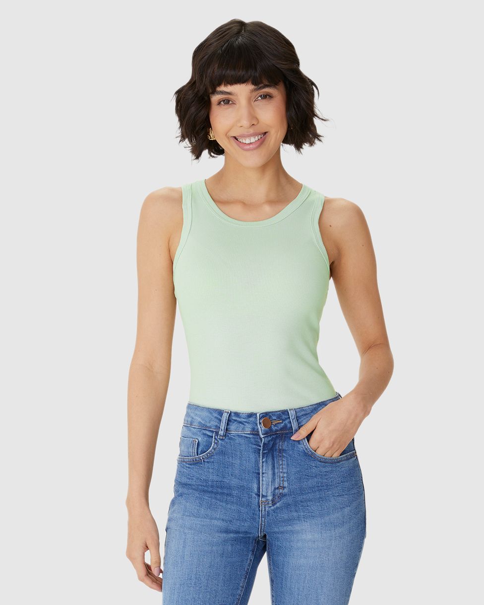 FemininoBlusas e CamisetasBlusas BásicasRegata Básica Feminina Decote U Em Ribana