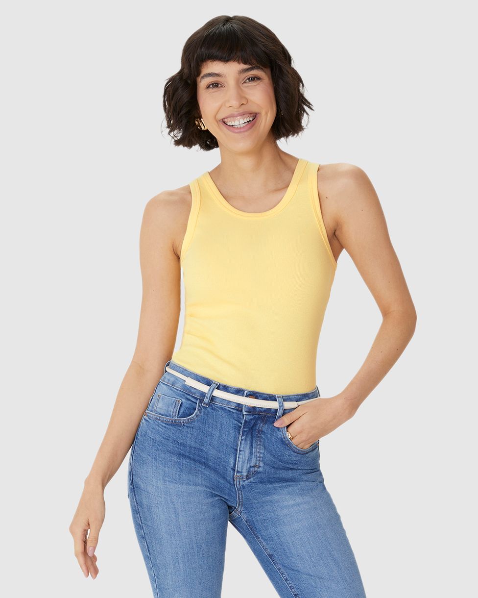 FemininoBlusas e CamisetasBlusas BásicasRegata Básica Feminina Decote U Em Ribana