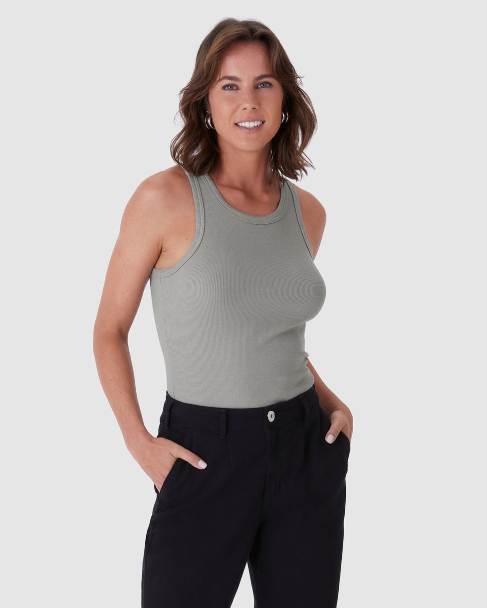 FemininoBlusas e CamisetasBlusas BásicasRegata Básica Feminina Decote U Em Ribana