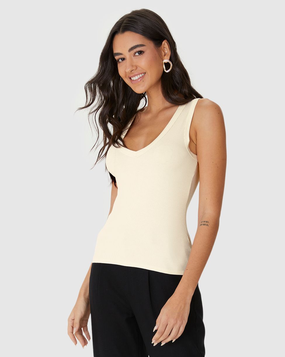 Regata Básica Feminina Decote V Alça Larga Em Malha Viscose Canelada