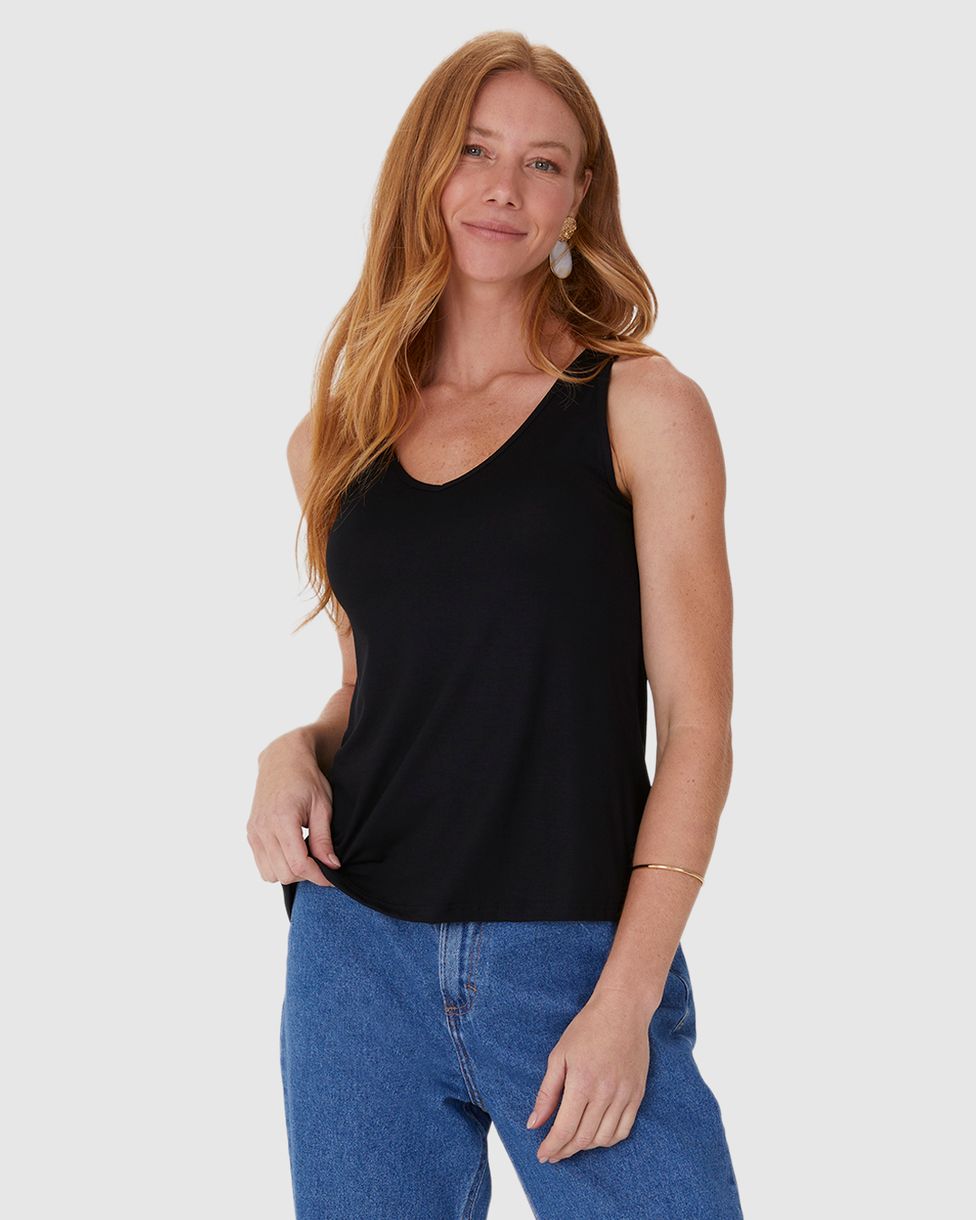 Regata Básica Feminina Decote V Em Malha Essence