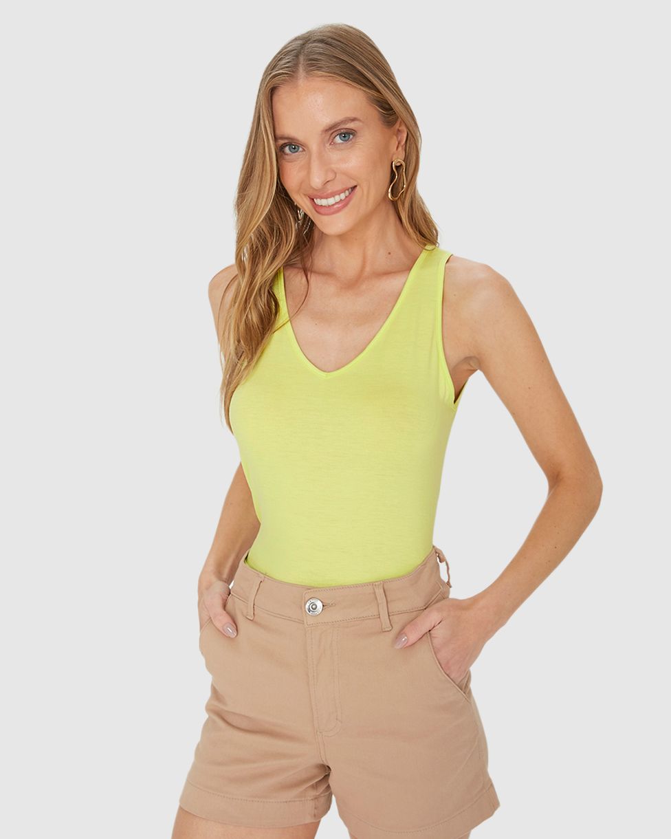 Regata Básica Feminina Decote V Em Malha Essence