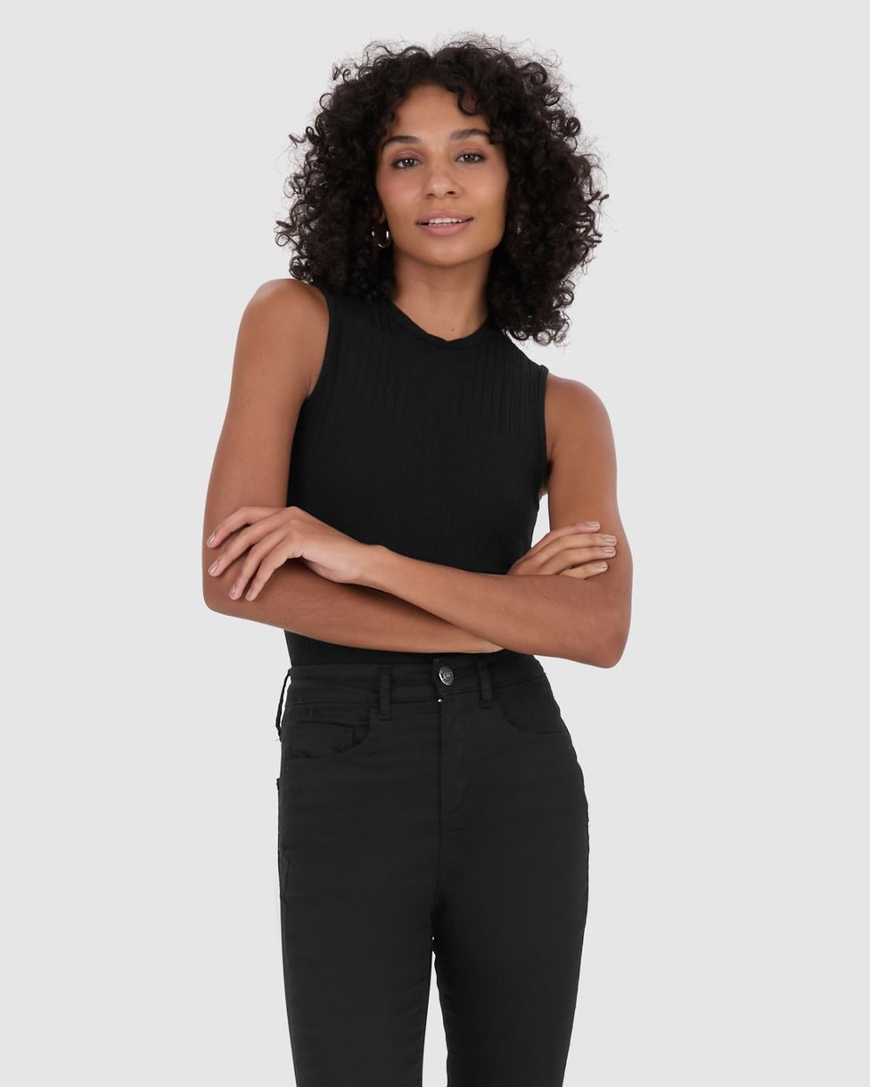 Regata Básica Feminina Gola Alta Em Canelado De Viscose