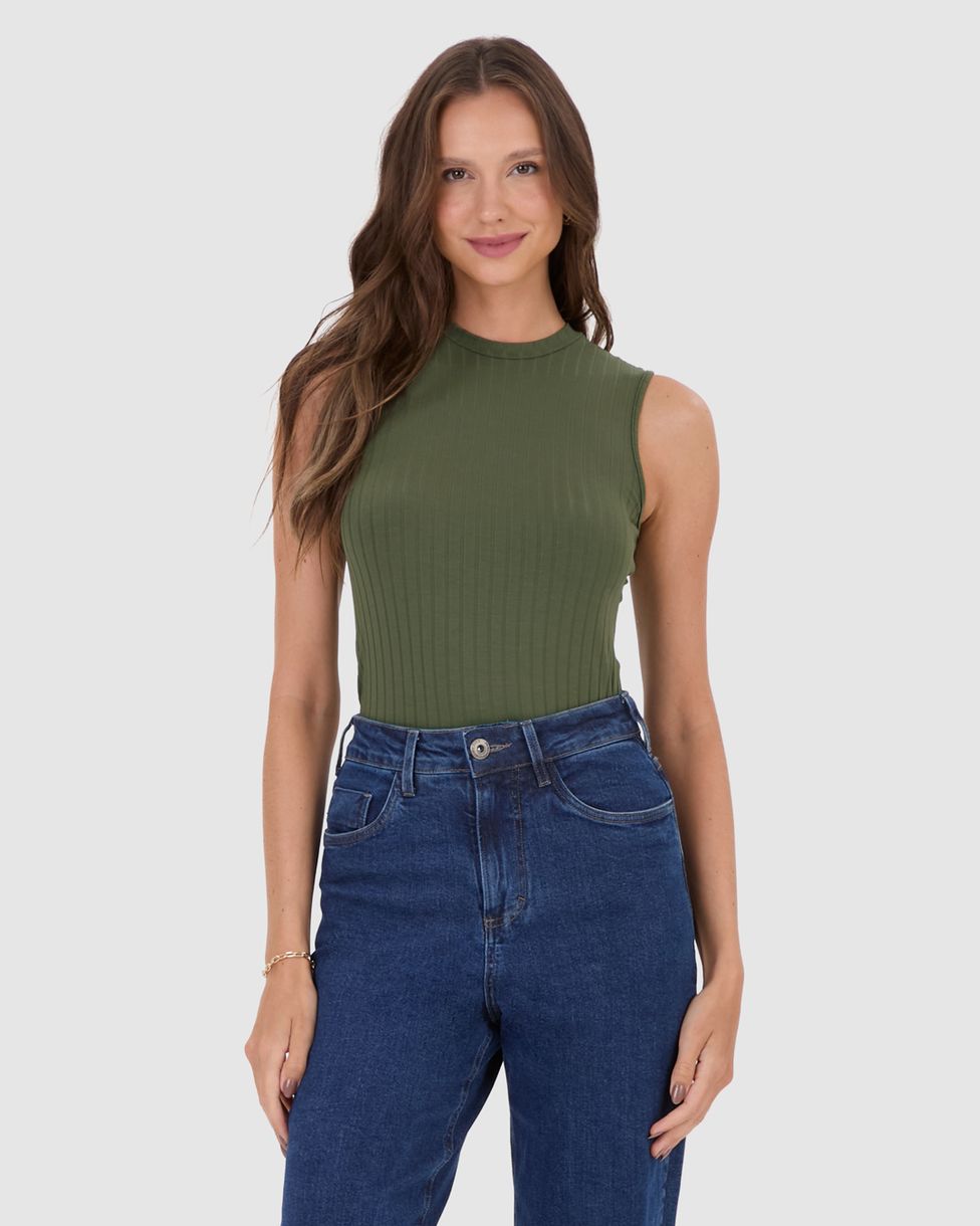 Regata Básica Feminina Gola Alta Em Canelado De Viscose
