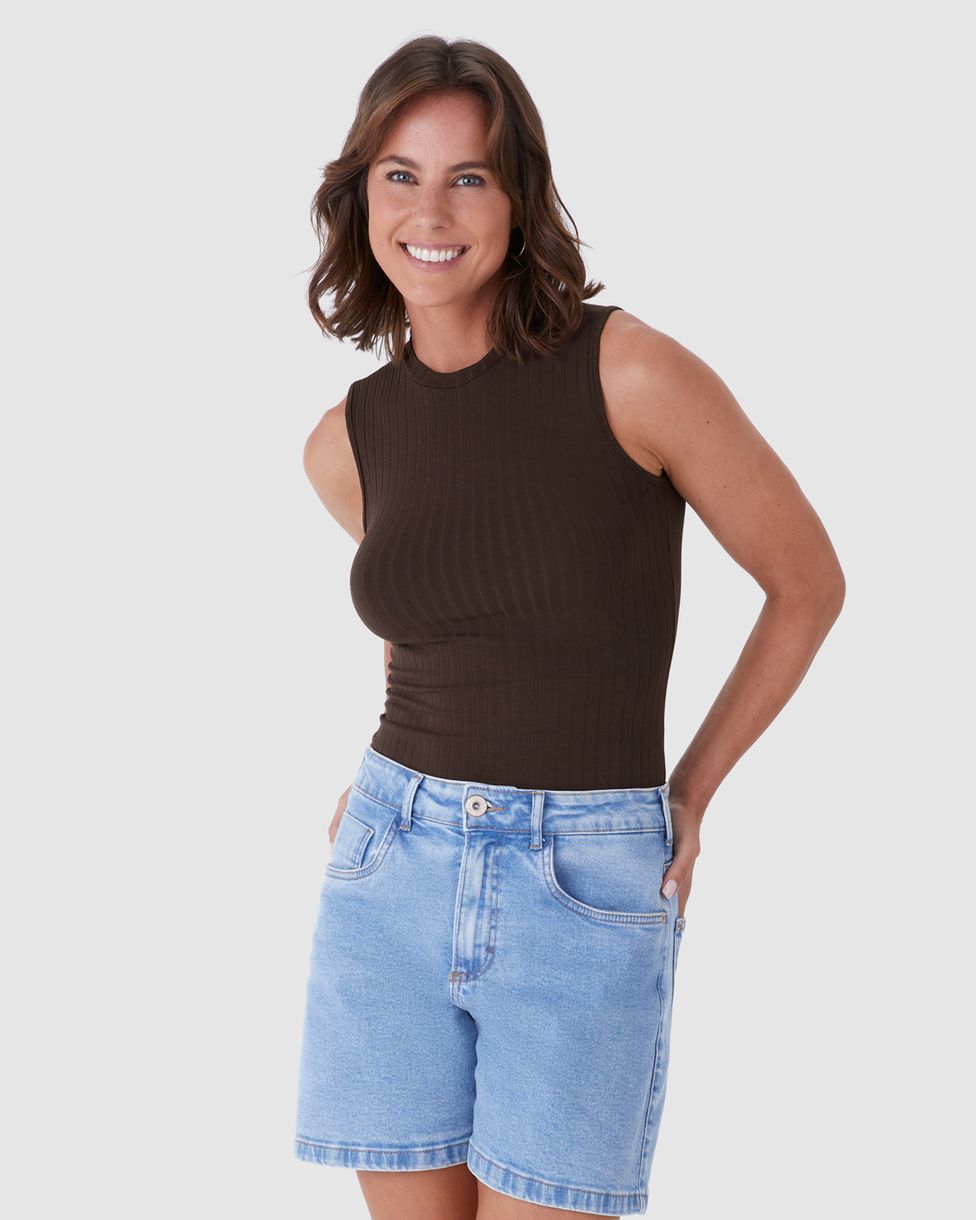 FemininoBlusas e CamisetasBlusas BásicasRegata Básica Feminina Gola Alta Em Canelado De Viscose
