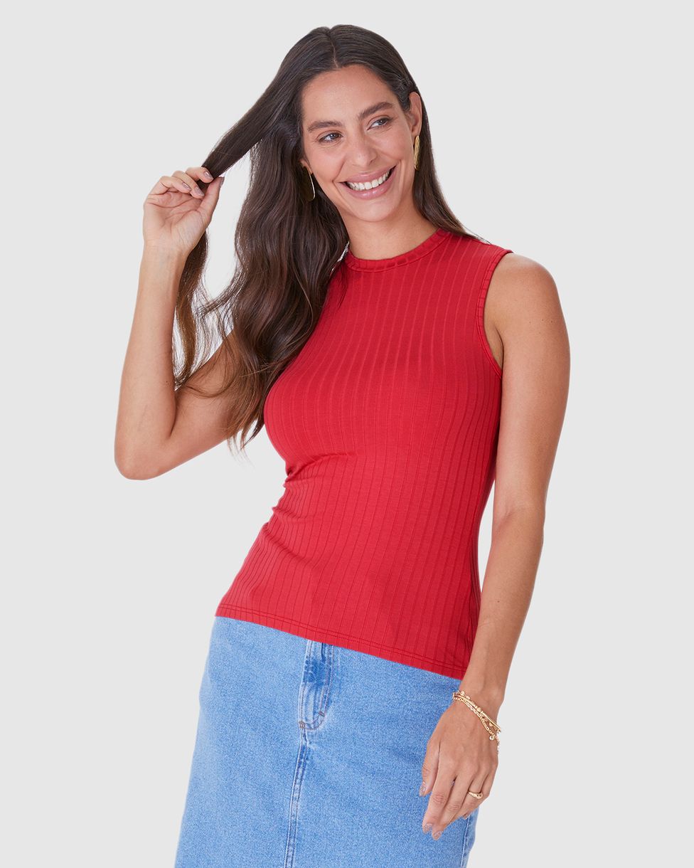 Regata Básica Feminina Gola Alta Em Canelado De Viscose