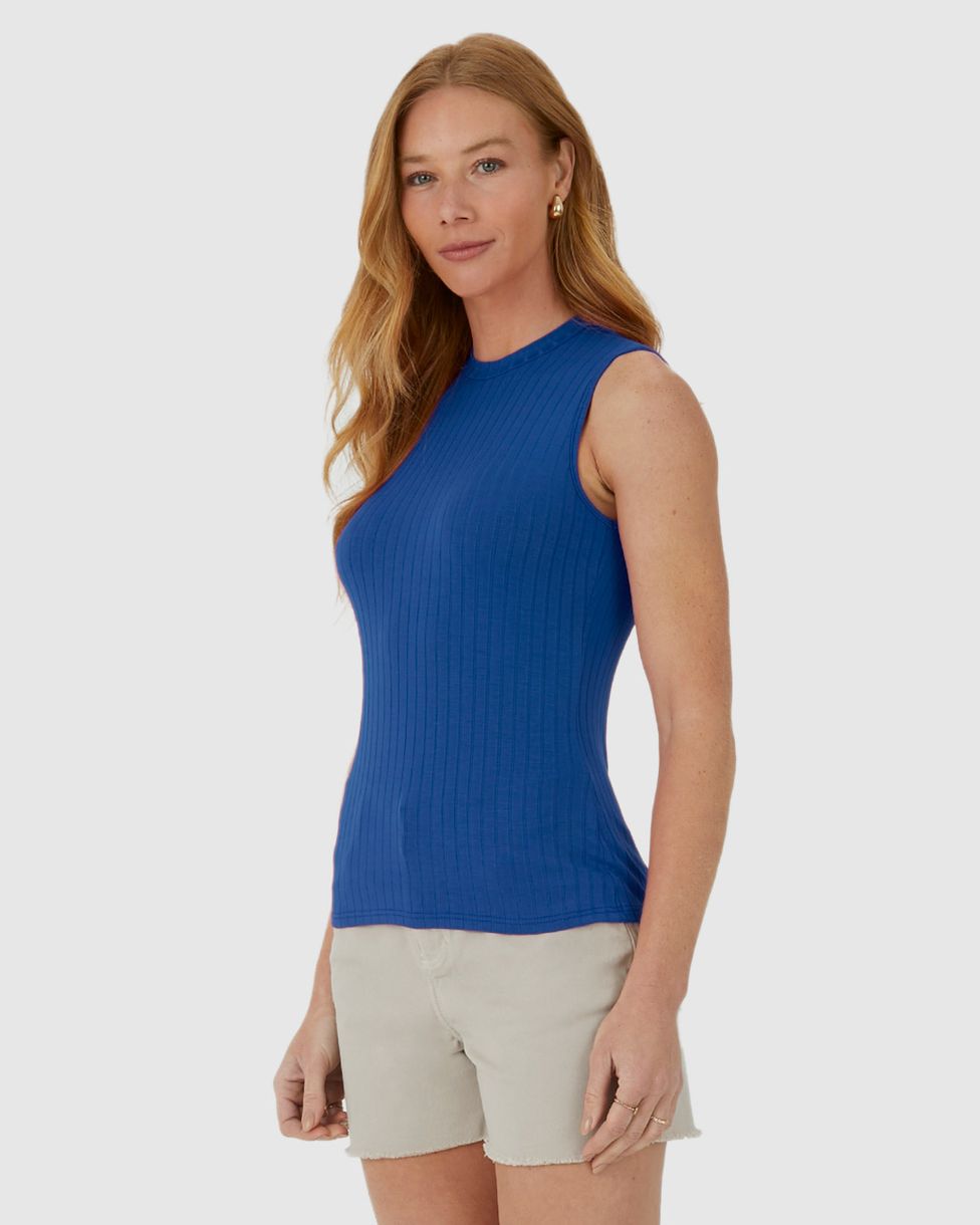 Regata Básica Feminina Gola Alta Em Canelado De Viscose