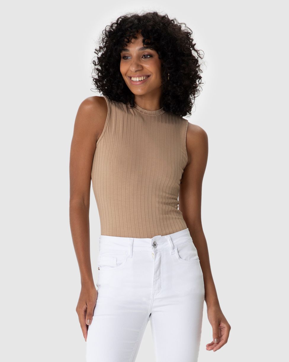 Regata Básica Feminina Gola Alta Em Canelado De Viscose