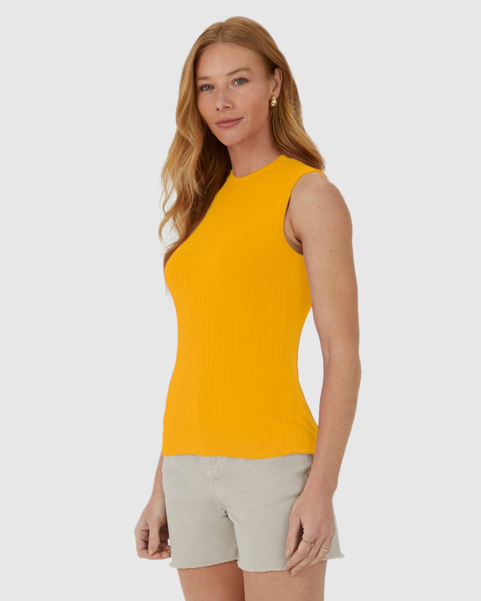 Regata Básica Feminina Gola Alta Em Canelado De Viscose
