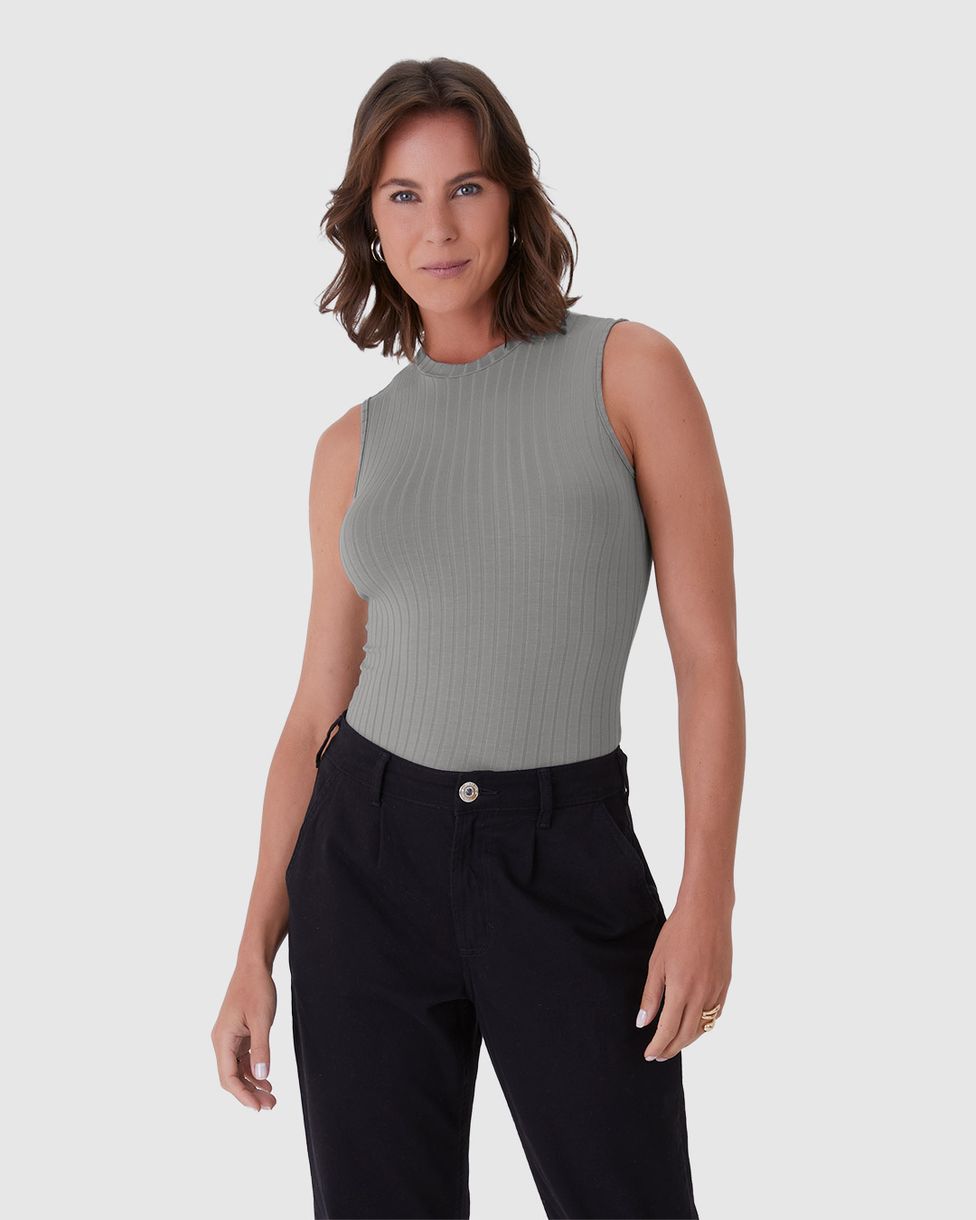 Regata Básica Feminina Gola Alta Em Canelado De Viscose