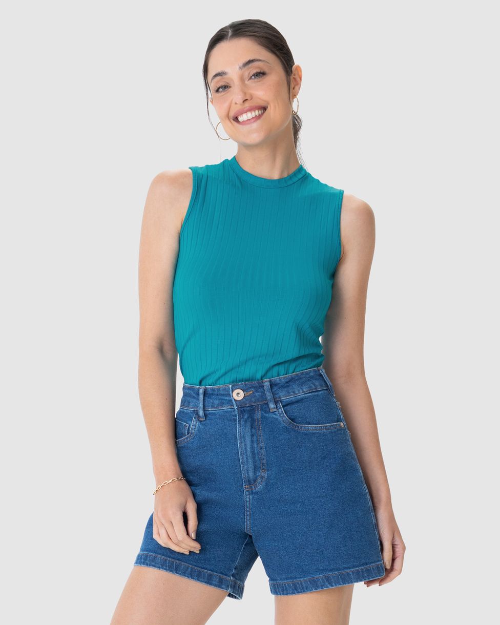 Regata Básica Feminina Gola Alta Em Canelado De Viscose