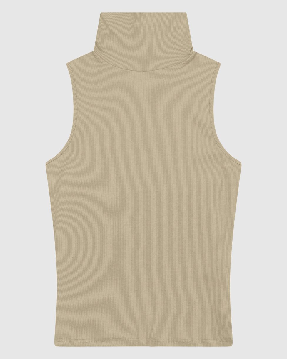 FemininoBlusas e CamisetasBlusas BásicasRegata Básica Feminina Justa Gola Alta Dupla Em Ribana Canelada - ENFIM