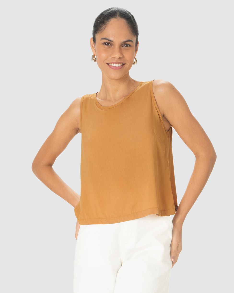 Regata Básica Feminina Long Cropped Alça Larga Em Viscose