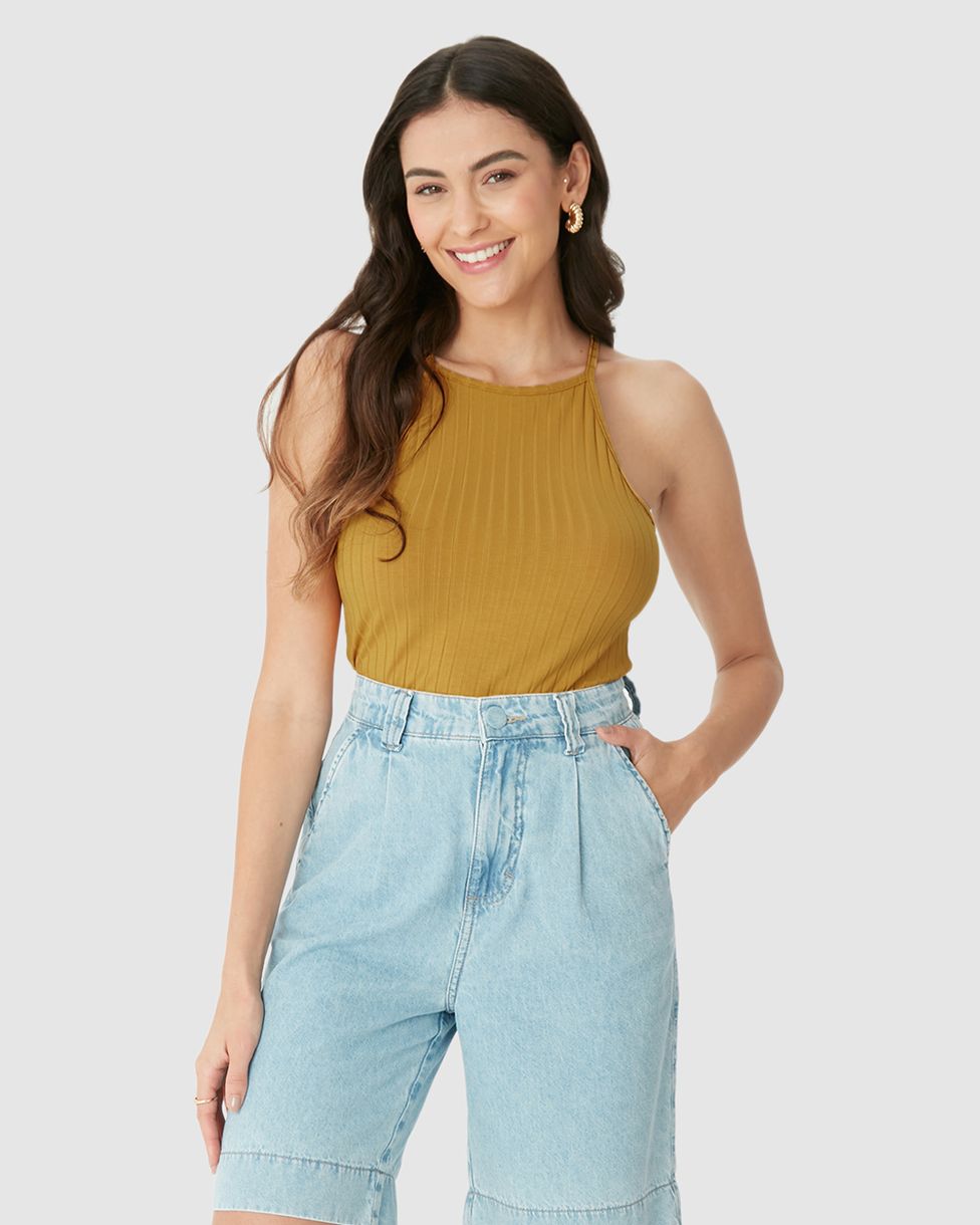 Regata Básica Feminina Nadador Em Canelado de Viscose Amarelo - G