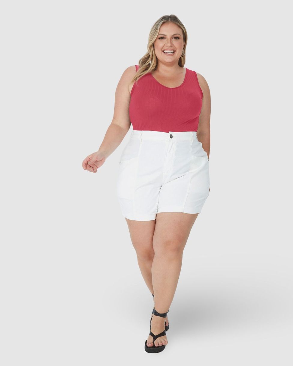 Regata Básica Feminina Plus Size Decote V Em Canelado De Viscose