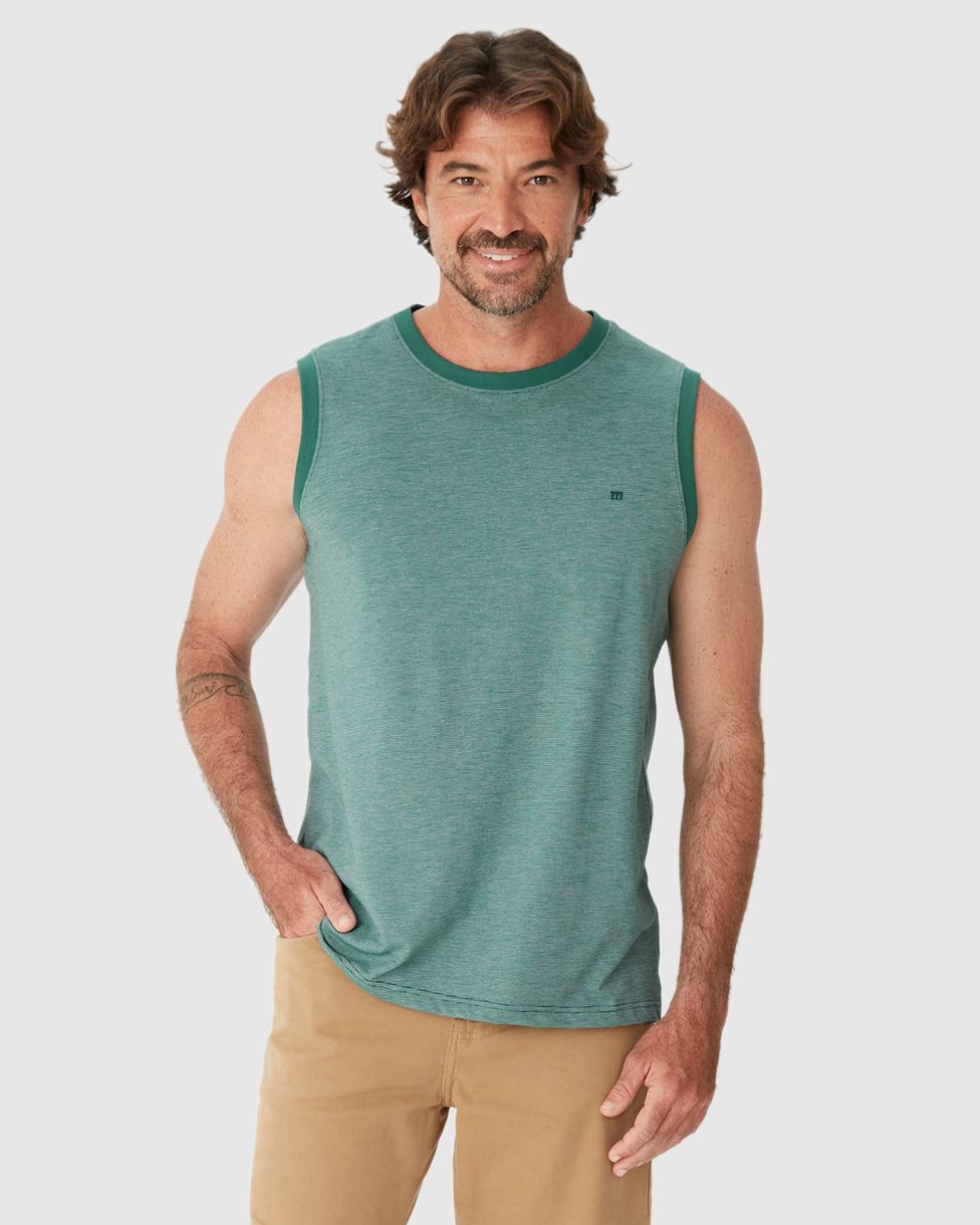 Regata Básica Masculina Alça Larga Bordado Frontal Em Malha Fio A Fio Verde - G