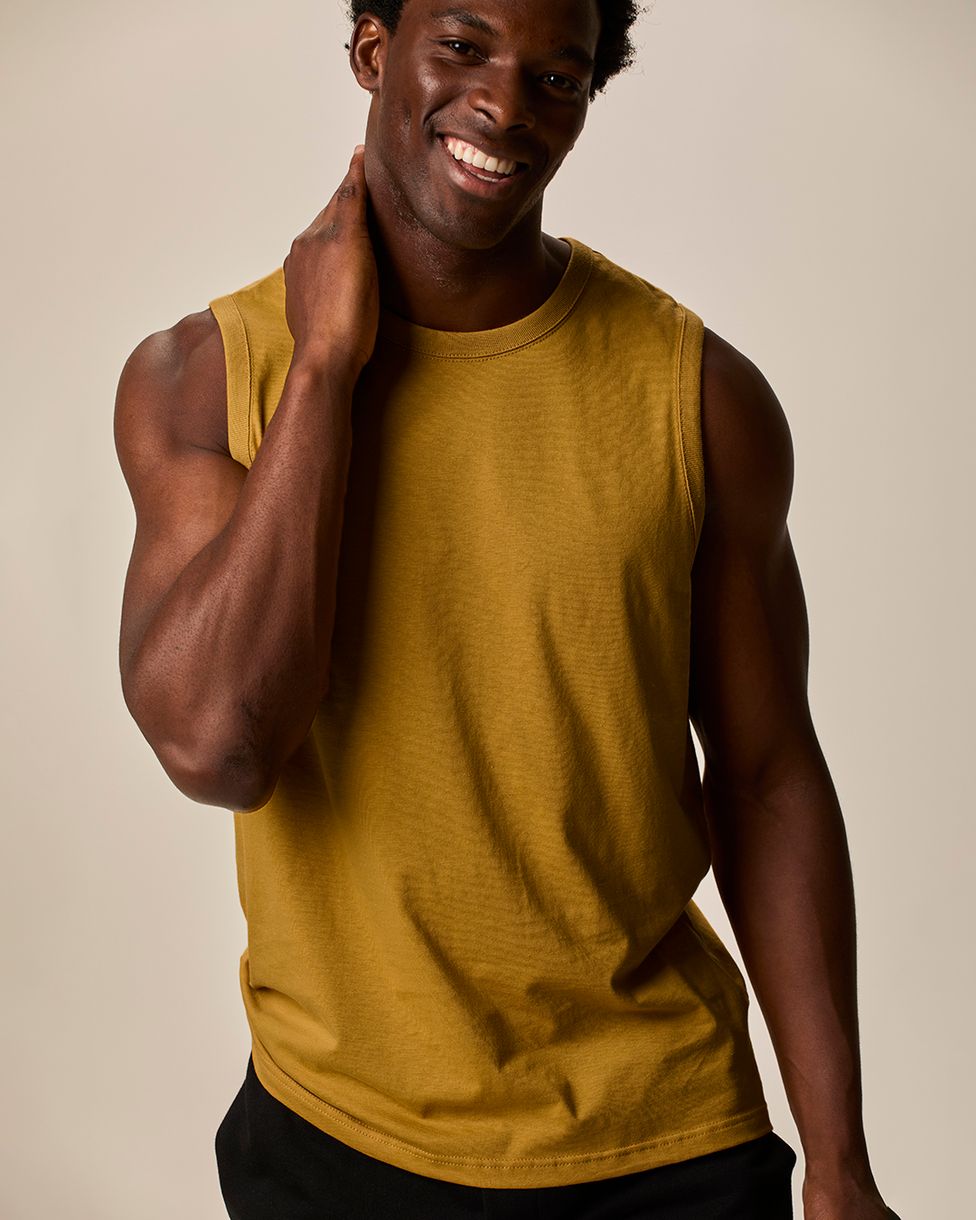 Regata Básica Masculina Cava Ajustada Em Algodão Amarelo - XGG
