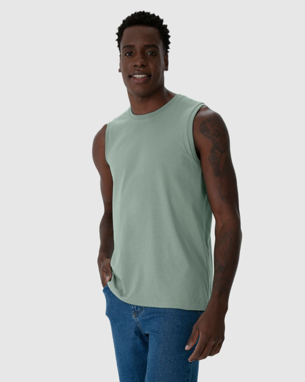 Regata Básica Masculina Cava Ajustada Em Algodão