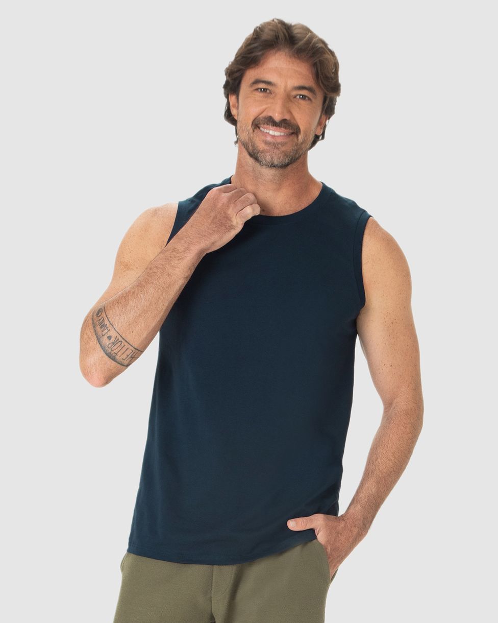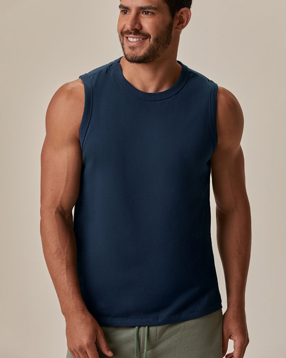 Regata Básica Masculina Cava Ajustada Em Algodão
