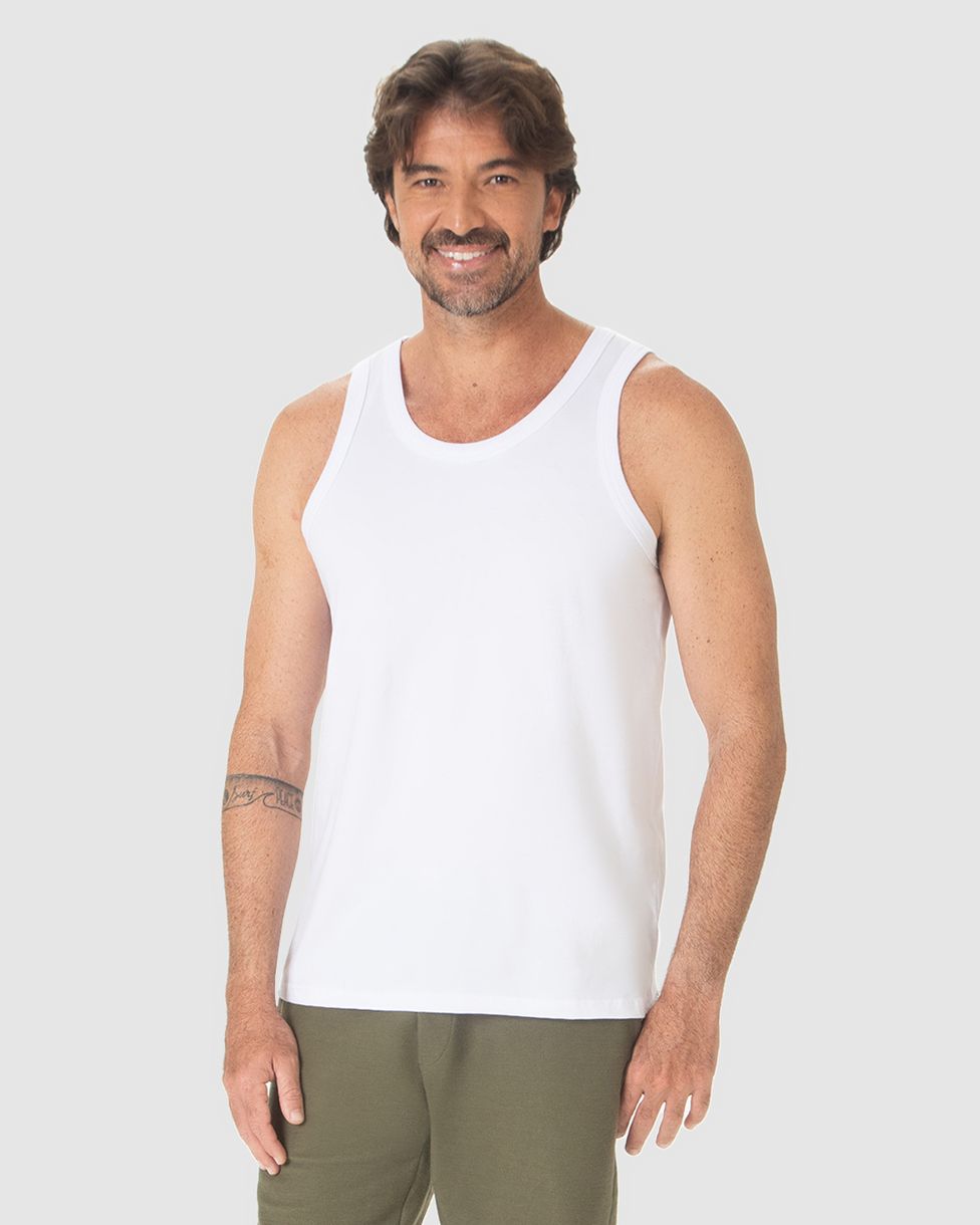 Regata Básica Masculina Decote Redondo E Costura Viés Em Algodão