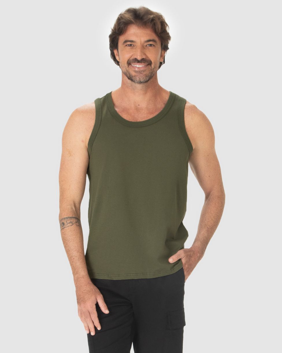 MasculinoCamisetasCamisetas BásicasRegata Básica Masculina Decote Redondo E Costura Viés Em Algodão
