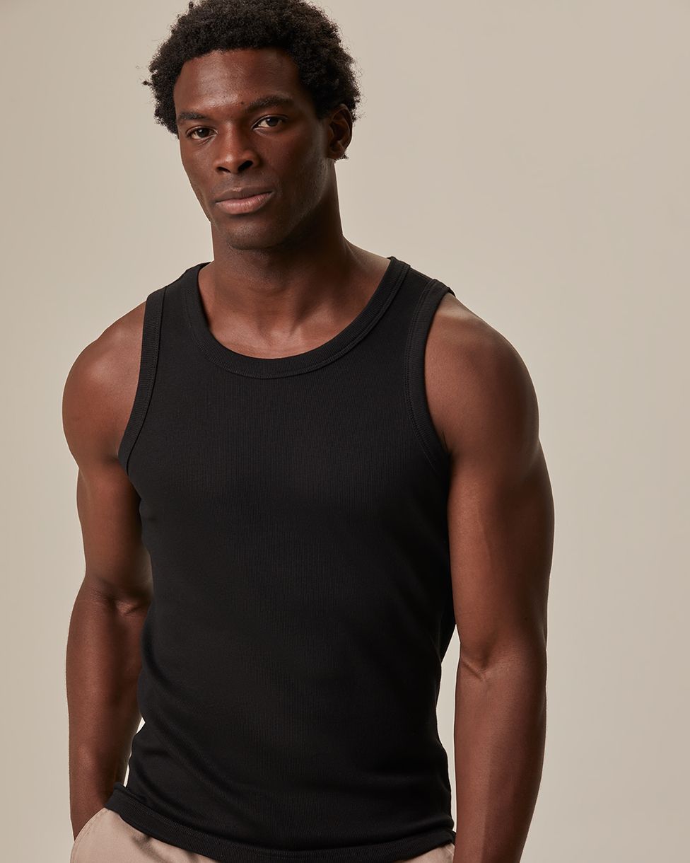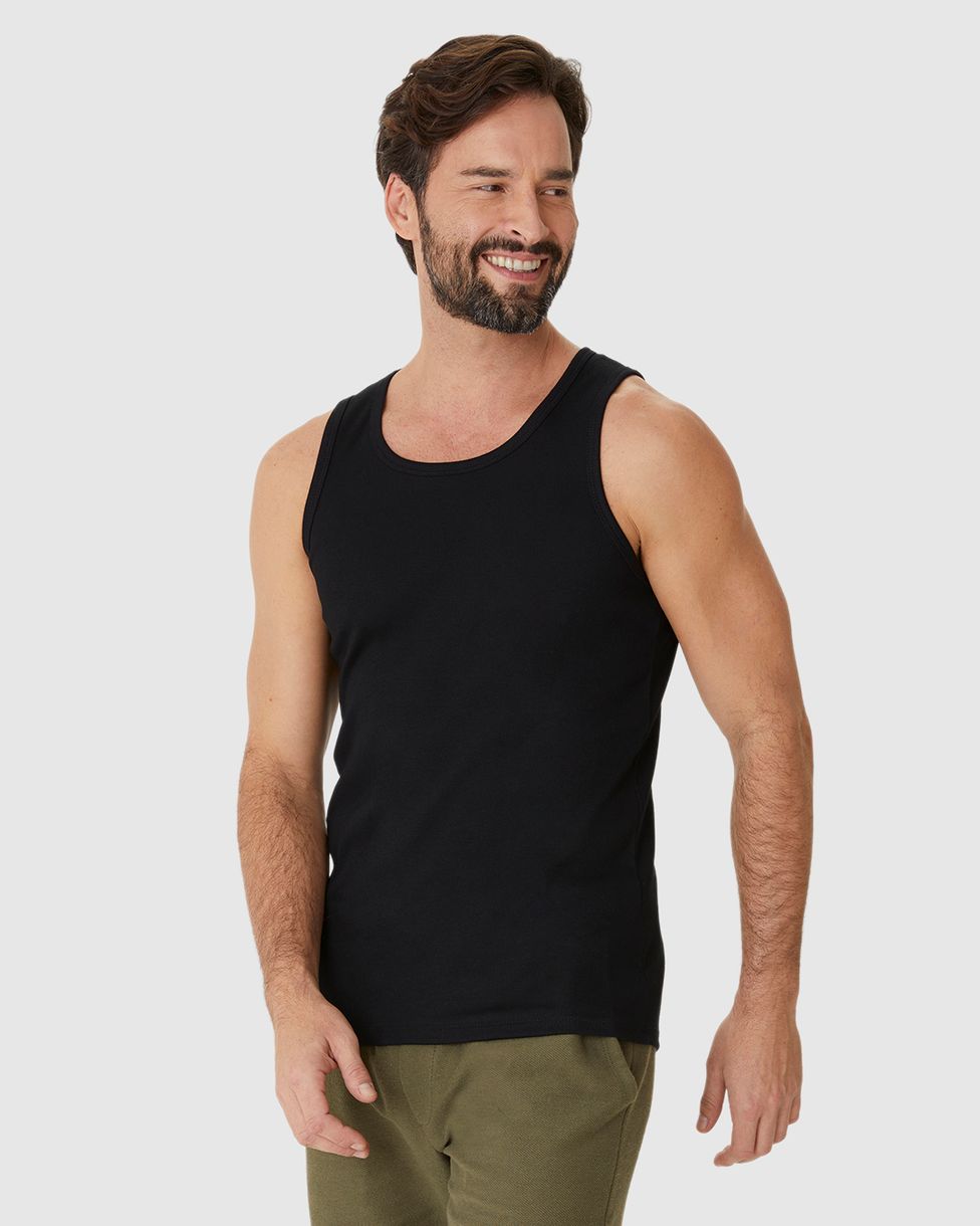 Regata Básica Masculina Decote Redondo Em Ribana Canelada